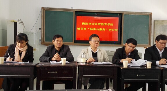 11月14日上午8:30,衡阳电大开放教育学院助学辅导员“助学与服务”研讨会在B302教室举行。衡阳电大校长萧烽、副校长龙永保、肖海源、院长陈祖一出席了研讨会,会议由开放教育学院主管教学的副院长李小玲主持,开放教育学院全体教师参加了研讨会,会议历时两个半小时,取得了很好的效果。