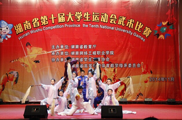 11月22日,湖南省第十届大学生运动会武术比赛在湖南网络工程职业学院体育艺术馆开赛。当日下午,各代表队经过激烈角逐决出了大学组、学院组、高职高专组3枚集体42式太极拳金牌。