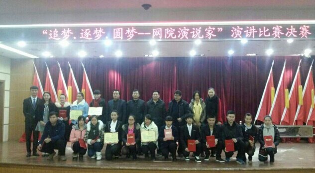 2014年12月11日晚在远教楼负一楼报告厅,学院思想政治理论课部成功举行了“追梦.逐梦.圆梦——网院演说家”演讲比赛决赛暨思想政治理论课实践教学成果汇报会。校党委委员副校长彭思毛教授、校关工委秘书长,校思政课部原主任蔡孟龙、网院教学副院长张导成教授、网院副院长陈碧华教授、江波教授、校团委书记李涌涛书记、思政课部副主任刘应君副教授出席了本次比赛并担任评委。