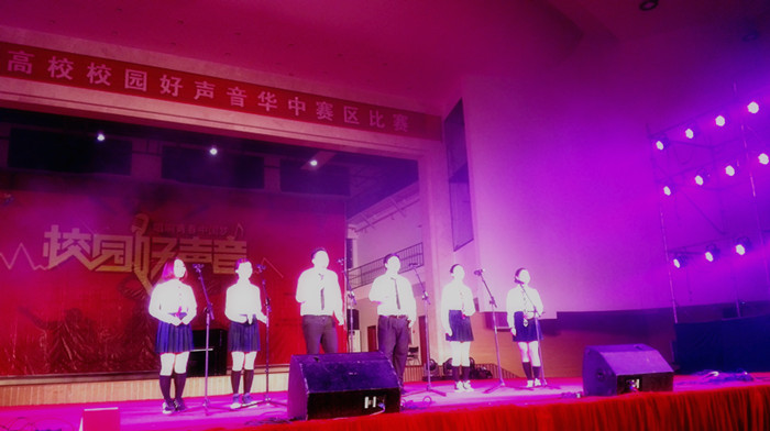 比赛一开始便硝烟弥漫,面对仅有的最后两个全国席位,五所学校的选手们都虎视眈眈,力争拼得最好名次。比赛分三轮进行,在第一轮的较量中,华中师范大学代表对以高出我校代表队0.2分的优势提前晋级第三轮竞演,第二轮中武汉大学又凭借主场优势晋级第三轮竞演,根据赛制,我校代表队凭借超高的网络人气成功复活,与武汉大学、华中师范大学会师第三轮。比赛也随之进入了最紧张火热的时刻。最终,我校代表队以 a cappella 的方式演绎了一曲民歌《青春舞曲》,用耳熟能详的旋律、a cappella的清新演绎打动了观众和评审的耳朵,最终从这场华中生死战中突围成功,获得了“校园好声音”全国总决赛的最后1张入场券。