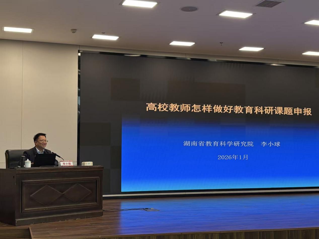 1月25日,省教育科学规划办常务副主任、省教科院教育科学规划研究所所长李小球做客湖南开放大学讲坛,作题为“高校教师怎样做好教育科研课题申报”的学术报告。报告会由党委委员、副校长钟金霞主持。