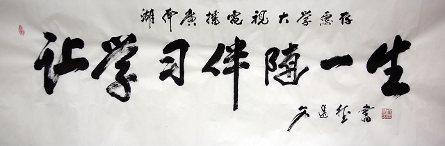 活动中,湖南省委原副书记文选德同志对我校确立争创一流开放大学的目标,积极推进学习型社会建设,打造终身教育学习平台大加赞许,并称道我校“让学习伴随一生”的校训“这个提法好”,随后欣然挥毫书写了这幅墨宝。(许向东)