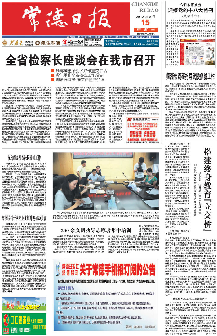 8月15日、22日、29日、9月5日,常德日报推出系列报道,对常德电大进行集中宣传。