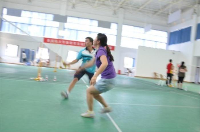 6月16日,岳阳市体育馆大众羽毛球馆里面活力四射,青春流溢,我校开放教育首届“精英杯”羽毛球大赛在这里如火如荼进行。本次比赛以“魅力电大,羽您共享”为主题,由我校开放教育班长协会组织,集结了 开放教育各专业共50余名羽毛球爱好者热情参与,分别角逐出男子单打、女子单打、男女混双三项冠亚季军。