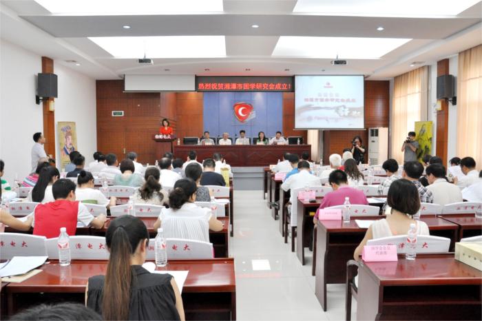 湘潭市国学研究会是以湘潭市国学研究人员及国学爱好者为主体,自愿结合组成的非营利性的湘潭市民间学术研究社团组织,现有会员100多人。为天地立心,为生民立命,为往圣续绝学,为万世开太平是它的宗旨。会长赖宇庭教授表示,在湘潭普及国学教育,培养大批能熟练掌握和运用国学智慧的社会精英,并结合当代社会实践理论,深入进行国学理论及应用研究,打造湖南乃至国家级的国学研究基地,推动湖湘文化的繁荣复兴是国学会的主要目标。为实现这一目标,接下来,国学会将通过不定期地举办学术交流会议、举办国学文化培训班、研讨班、专题讲座、专家论坛、文化沙龙等一系列活动,来普及和传播国学文化基础知识,提高会员对传统文化科学性的认知和兴趣。