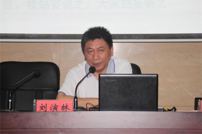 刘演林以《我对开放大学建设的几点认识》为题,从五个方面对开放大学建设进行了详尽阐述。他首先分析了什么是开放大学,谈到了为什么要办开放大学,论述了怎样才能办好开放大学,提到了怎样才是办好了开放大学,最后解读了《湖南开放大学建设实施方案》。刘教授的报告主题很突出,思路很清晰,观点很鲜明,语言很生动,具有很强的学术性、指导性、启发性,为岳阳电大向岳阳开放大学转型升级过程中,开阔眼界,开拓思路,激活思维,优化行为,提高水平,增强绩效。
