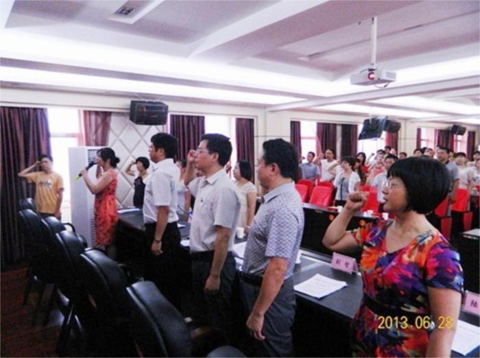 随后,学校召开了“七一”庆祝表彰暨新党员宣誓大会。会议由副校长龙永保主持,会上,表彰了2013年度优秀党支部、优秀共产党员和今年来开展的各项主题活动获奖者;发展了一批新党员,并开展了党员重温入党誓词活动;优秀支部、优秀党员代表以及新党员代表都作了典型发言。
