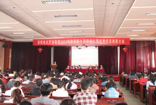 秋风送爽,硕果飘香。9月28日上午9点,我校在615礼堂隆重举行2013春开放教育新生开学典礼暨优秀学员表彰大会。岳阳电大校长黄湖滨、校党委副书记袁征、副校长江家立、副校长封屹、校纪委书记乐艳华、校长助理熊灏、校长助理、教务处处长苏快群等领导全体出席,开放教育处处长李健率领全体责任老师倾情亮相,以高度的热情欢迎764位新同学融入电大这个大家庭。开学典礼由校党委副书记袁征主持。