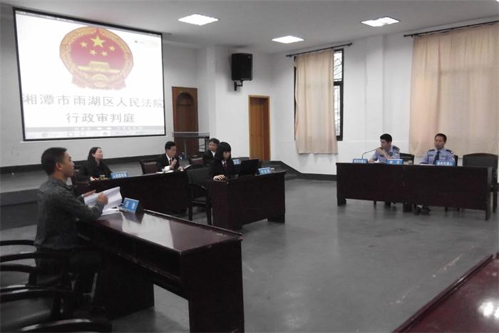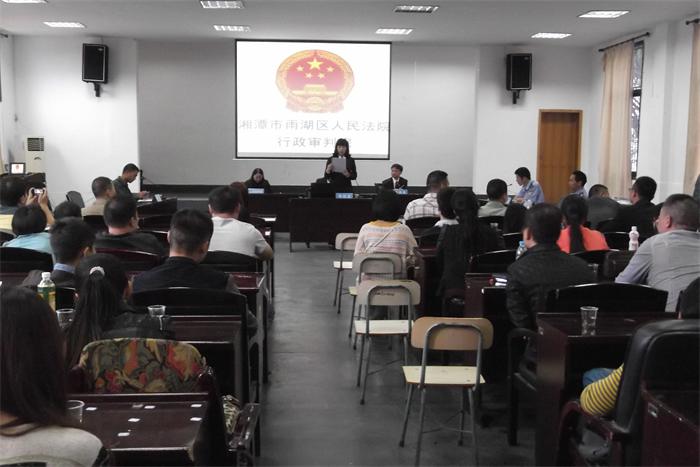 10月15日下午3点,湘潭市雨湖区人民法院行政审判庭在湘潭电大办公楼三楼进行现场庭审,近百名学员和教师参加旁听。