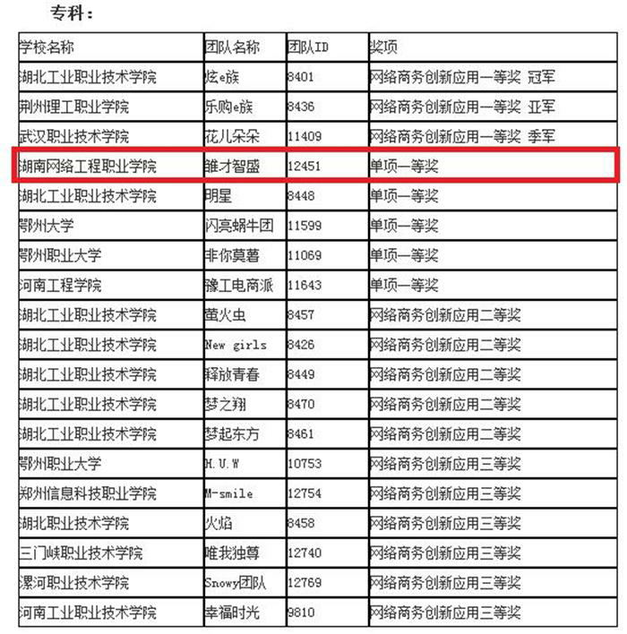 2013年10月12日,由中国工业和信息化部指导、教育部支持、中国互联网协会及新赢家网主办、中国邮政储蓄银行主协办的中国互联网协会邮储银行杯第六届全国大学生网络商务创新应用大赛分赛区决赛获奖名单揭晓,由湖南网络工程职业学院电子商务专业彭楚钧老师指导的学生团队喜获华中赛区一等奖。