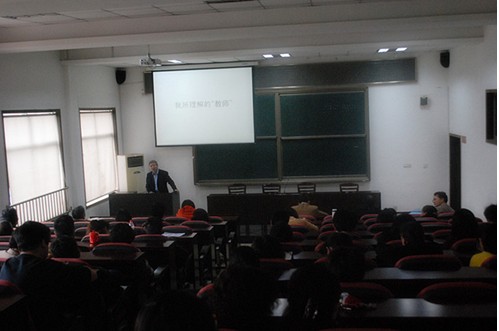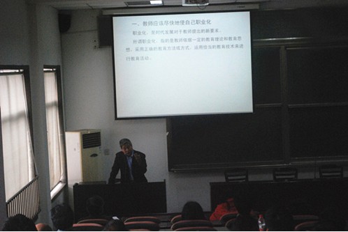 在一个半小时的讲座中,宋宝坤副教授运用大量生动的案例,讲解了教师职业道德和教师成长的相关问题。宋宝坤认为,许多教师把教育功利化,把自己简化成知识的承载者和传播者,这是教师的自我“打折”。教师是人类灵魂的工程师,教师教育学生,应以崇高的职业责任言传、身传,成为学生学习、效法的楷模和表率,即做到“学为人师,行为世范”。(文、图/郭琳玲)