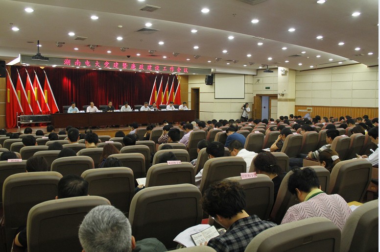 5月16日,湖南电大党建暨廉政建设工作会议在远教大楼负一楼报告厅召开。校领导陈建民、周宇、刘建军、彭思毛、黎定军、汤筱飞、欧俊、陈明文、吴敏、刘演林出席会议。党委书记陈建民主持会议并讲话。强调要以“三严三实”要求深入开展党的群众路线教育实践活动,以“三严三实”要求做好学校党建工作,以“三严三实”要求做好反腐倡廉工作。