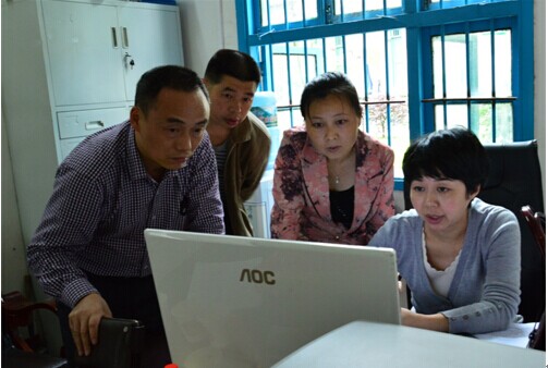 杨昕老师在给会同电大工作站管理人员演示形成性考核的操作程序