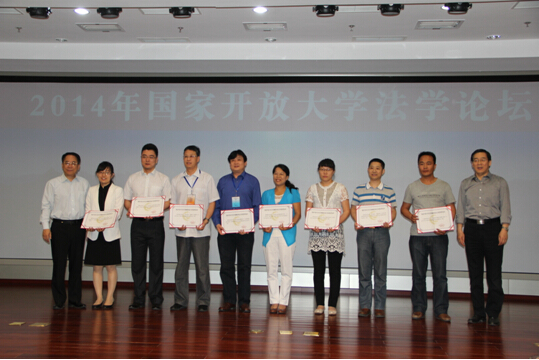 开坛前,国家开放大学副校长严冰宣布了国家开放大学2013年法学专业教师优秀论文的评选结果,国家开放大学杨志坚校长和李凌书记为参加论坛的获奖教师颁发了证书。湖南电大永州分校顾明、怀化分校杨秀朝、省校刘建宏分别获一、二、三等奖,省校姚春艳、益阳分校宋义云、岳阳分校王拥华与钟临辉(合著)、严静、张宇光分别获优秀奖。(永州电大 顾 明)