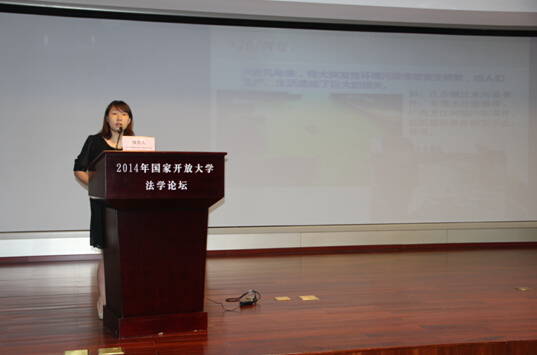 在国家开放大学法学系成立30周年之际,国家开放大学举办了主题为“开放大学法学教学研究与思考”的法学论坛。来自全国41个省市分部、实验学院的一百余人参加了本次论坛。本次论坛分为两个主题,共有来自全国不同省份、地市的十一位教师做了主题发言。湖南电大省校教授刘建宏围绕“法学教学学术”主题做了《全程实践:一种适应成人学习的法律实务课程教学模式》的主题发言,湖南电大永州分校教师顾明围绕“法学研究”主题做了《突发性环境污染事件中的企业环境信息公开问题研究——以紫金矿业水污染事件为例》的主题发言。