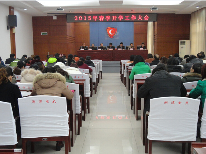 2015年3月2日上午10点,湘潭电大2015年春季开学工作大会在学校综合实训楼六楼报告厅召开。全体校领导和全校教职员工150余人参加会议。大会由副校长钱焕新主持。