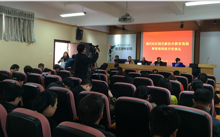 上午,由长沙广播电视大学(长沙社区大学)主办,湖南农业大学园艺园林学院承办的“现代园艺社区新技术教育师资培训班”开班典礼于在湖南农业大学园艺园林学院隆重举行。出席开班典礼的领导有长沙电大党委书记胡党生、校长常立新、副校长魏建明、纪委书记林涛及园艺园林学院院长杨国顺、副院长甘德欣、副院长何长征。长沙社区大学全体在职教师、长沙10所示范性社区学校和6个优秀社区学习中心建设单位专干共60余人作为学员参加会议。