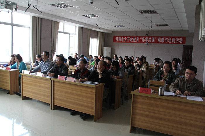 4月3日下午,岳阳电大在321视频直播大厅隆重举行开放教育2015年上学期“导学约课”观摩与培训活动。岳阳电大副校长封屹、校长助理、教务处处长苏快群、开放教育学院院长李健等领导,以及开放教育全体专业责任教师、助学辅导员和课程辅导教师参加了此次活动。