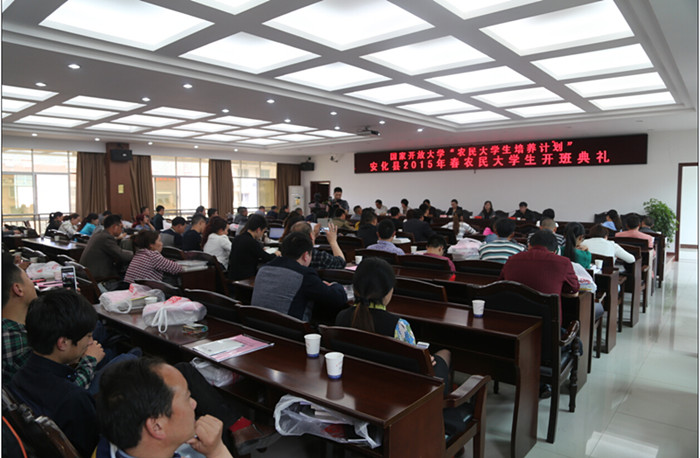 开学典礼由刘胜辉同志主持,益阳电大分管校领导刘燕介绍了国家开放大学和“农民大学培养计划”的基本情况,并对安化电大站的管理和服务工作、学员学习提出了几点建议和要求;安化县委组织部副部长曾锦霞强调安化县委、县政府高度重视安化县农民大学生的培养工作,希望各部门整体联动,紧密配合,确保培养计划的圆满完成;市委组织部党员教育中心主任谌毅勇做了重要讲话,“农民大学生培养计划”是为满足广大农村党员干部接受高等教育的愿望,夯实农村人才队伍基础的强农惠农富农工程,希望相关教学和管理部门严明职责、密切配合、精心组织好教学,从“实际、实用、实效”出发,确保“农民大学生培养计划”教学质量。