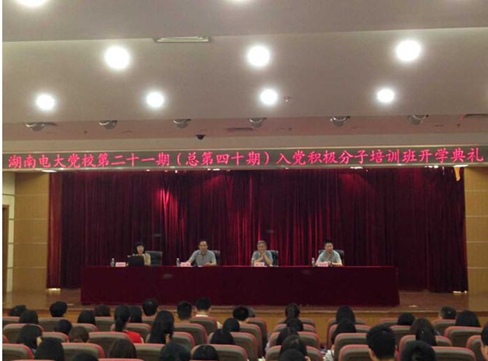 我校第二十一期(总第四十期)入党积极分子培训班于5月6日中午12:30在远教楼负一楼报告厅举行开学典礼。党委副书记周宇教授,副校长吴敏副教授,网院副院长陈碧华教授出席开学典礼。学生处负责人、校团委负责人、各系党总支书记、学生处全体教师和各系学生党支部书记以及党训班全体195名学员参加此次开学典礼。开学典礼由党委工作部部长刘育奇同志主持。