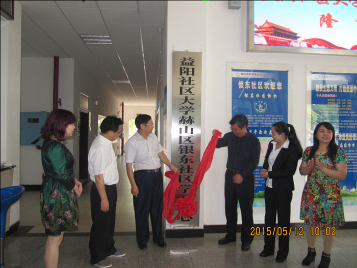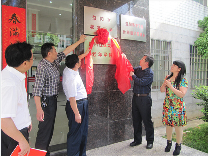 在揭牌仪式上,益阳市人民政府副厅级干部喻国良、益阳电大党委书记曹卫兵、市委老干部局副局长文潇宇、市教育局职成科科长龚辉平为益阳社区大学老年学院揭牌。紧接着,又为益阳社区大学银东社区学习中心、益阳社区大学资阳区南岳宫社区学习中心揭牌。 (益阳电大 史桂湘 唐 箭)