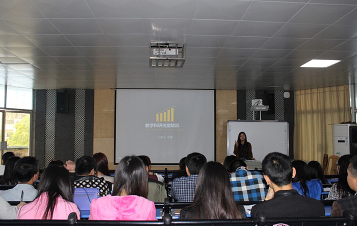5月11日下午,衡阳电大申燕教授在南校区多功能厅二楼阶梯教室为学校全体青年教师作了题为《教学科研技能培训》的讲座。全体青年教师与会,会议由教务处主任费少忠主持。