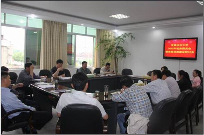 2015年5月15日下午,常德社区大学2015年校务委员会暨课程资源建设研讨会在常德电大办公楼三楼会议室举行。市教育局副局长、常德社区大学副校长李旺国,市电大校长、常德社区大学副校长朱立春以及其他校务委员出席了此次校务会。会议由市教育局副局长、常德社区大学副校长李旺国主持。