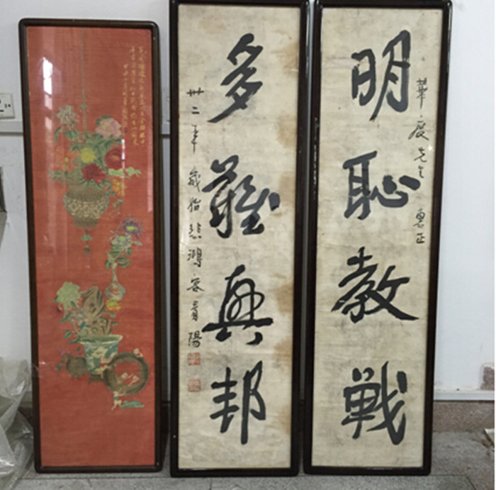 梅兰芳《花卉博古图》(左)、徐悲鸿的行书(右)