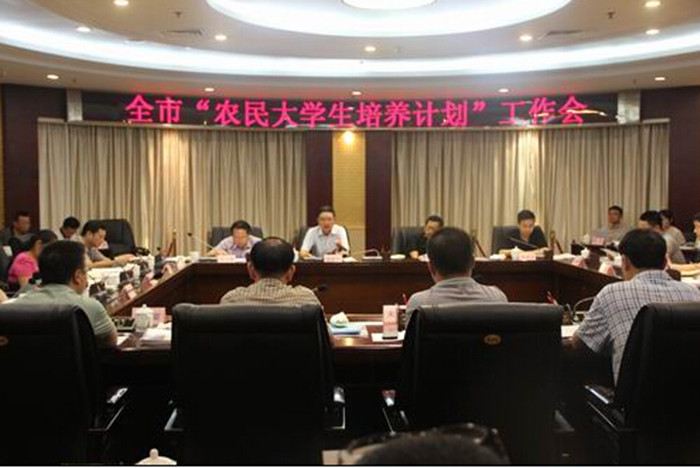 袁文主任在会上宣读了由市委组织部、市教育局、市财政局、市人社局联合下发的《关于实施“农民大学生培养计划”的通知》(常组发〔2015〕6号)。“通知”明确:从2015年起,在全市启动实施“农民大学生培养计划”,“农民大学生培养计划范围主要是户口在我市辖区内的村支两委干部及村后备干部、中共党员及入党积极分子”,“依托市广播电视大学系统进行培养,专科与本科学制均为两年半”。