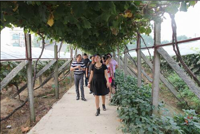 行政支部一行人员在鼎城区灌溪镇汤家坪村妇女主任、湖南华湘生态葡萄园负责人、电大“一村一大”学员铁利的陪同下实地考察参观了生态葡萄园的情况。铁利向我校行政支部一行人员汇报了自己在电大学习的情况,讲述了自己与其他村干部一起运用电大所学知识带头创建生态葡萄园的创业事迹。党委书记唐爱国对铁利学员带头创业、带头致富、学以致用的精神给予高度肯定和赞扬,评价其“思路好、技术好、效果好、贡献好”。