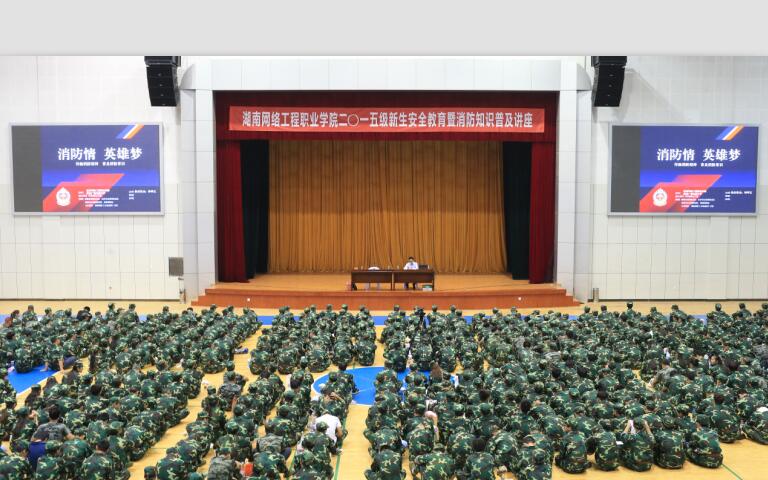 2015级新生军训工作正在进行地如火如荼,为使新生尽快适应大学生活,营造安全和谐的学习环境,9月25下午,学校在体艺馆举行了2015级新生安全知识教育暨消防疏散演练活动。保卫处肖胜旗处长主持活动,全体消防及综治维稳安全员、部分宿管员及1700余名新生参加了活动。