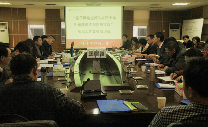 12月24日,我校召开“基于网络空间的农民大学生培养模式创新与实践”项目的工作培训会议。“农民大学生培养计划”项目的九个试点县市电大负责人及项目专干参加了此次培训,会议由校长助理兼教务处处长缪富民主持。