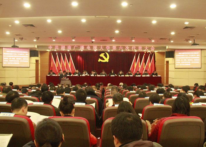 中国共产党湖南广播电视大学第六次代表大会,是在创建湖南开放大学、谋划学校“十三五”规划的关键时刻召开的一次十分重要的大会。本次大会的主题是:高举中国特色社会主义伟大旗帜,深入贯彻落实党的十八大、十八届三中、四中、五中全会精神和习近平总书记系列重要讲话精神,统一思想,坚定信心,开拓创新寻突破,转型升级求发展,奋力开启建设国内一流开放大学的新征程。