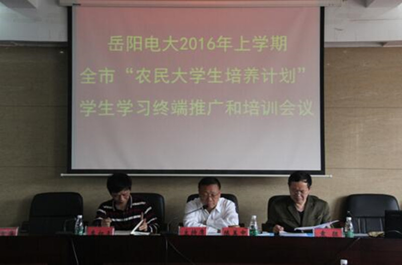 4月11日,岳阳电大在科教楼学术报告厅隆重召开2016年上学期全市电大系统“农民大学生培养计划”学生学习终端推广和培训工作会议,专题布置“农民大学生培养计划”教学工作,并进行“学派”发放和业务培训。省校教材中心李拓天副主任、周波科长和尹海波老师,以及各县级分校主要负责人、学校校领导、相关部门负责人参加了本次会议。会议由学校党委书记陈美中主持。
