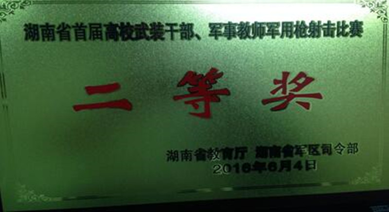 近日,全省首届高校武装干部、军事教师军用枪射击比赛在湖南警察学院举行。湖南省军区副参谋长胡代松、省教育厅副厅长应若平以及相关高校领导出席,全省近百所高校组队参加比赛。我校由吴敏、陈碧华、李涌涛、彭忠飞、邵海洋、柳波五人组成的参赛队伍,历经几个星期的训练,通过军事化考验,勇夺首届高校武装干部、军事教师军用枪射击比赛二等奖,彭忠飞获得最佳射手。(学生处 柳波)