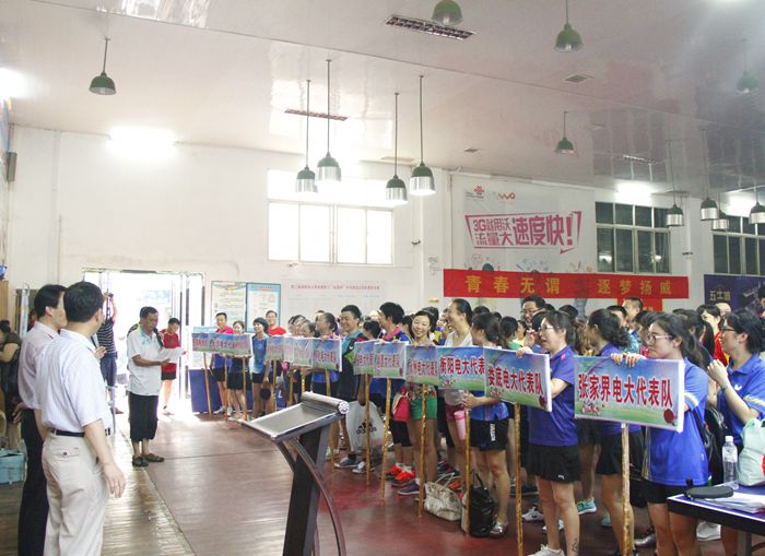 6月24日,第三届湖南电大系统教职工“友谊杯”乒乓球团体赛在郴州体育训练基地举行。湖南电大党委副书记周宇宣布开幕。