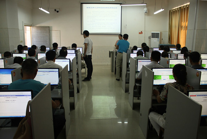 在简短的揭牌仪式结束后,市普法培训考试中心随即举办了市学法考试首批集中上机考试,来自市司法局、市国家税务局及市环境保护局的工作人员参加了考试。考场内安装了监控设备,考试全程录像,监考员严格监考,考生认真做题,考场秩序井然。