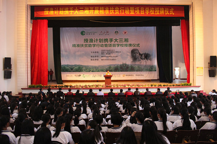 衡阳市教育局局长周法清在授牌仪式上指出,教育扶贫是最基础性、根本性的扶贫。中国福利基金会“授渔计划”携手湖南大三湘公司走进我市教育,首批精准帮扶衡阳电大信息网络工程学校大三湘油茶农子弟和贫困学生,这是响应党中央号召,贯彻落实省委、市委精准扶贫工作部署的及时之举、精准之举、大善之举!并对项目学校提出了具体要求,他强调衡阳电大信息网络工程学校应以此为契机,不断深化教育教学改革,优化师资队伍素质,细化教学日常管理,强化办学水平和能力,全面关心关注学生、尤其是贫困学生的成长和成才,不让一个学生在求学、求知、成人、成才的道路上掉队。教育主管部门一定会高度重视、全力支持,密切配合、精准服务,确保项目在我市落地生根、开花结果,让更多的贫困学子受惠受益、励志成才、服务社会。