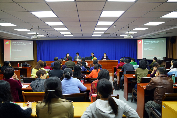 Todd博士和Julie女士在讲座中简要介绍中美两国高校教师教学与学习发展中心的情况,详细介绍了FSU的框架结构和功能。FSU教师教学学习发展中心旨在促进教学创新与改革,促进教师学术教研能力的发展,帮助FSU所有员工带动学生学习。FSU教师教学学习发展中心主要面向新教师、工作2-3年的初级教师、全体教师三个层级的教师群体开展服务。主要围绕培养职业使命、团队精神、学习能力、教学能力、课程设计等方面开展。