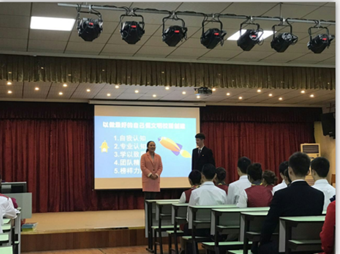 通过此次班会,同学们对外展示了自己的职业素养,树立了良好的信心,为争当文明大学生,创建文明高校做出自己的努力。(旅游管理系)