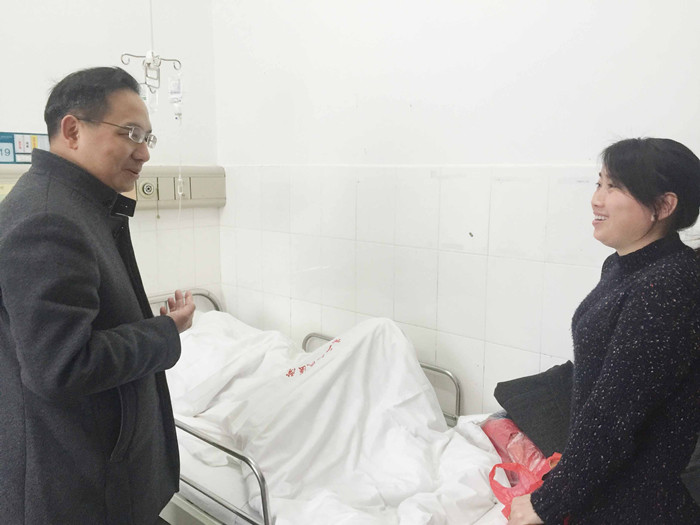 2月22日下午,学校副校长吴敏一行前往第二人民医院,看望慰问了正在住院治疗的2016级软件一班的程子威同学。