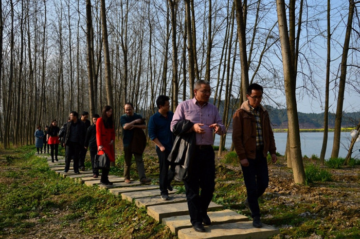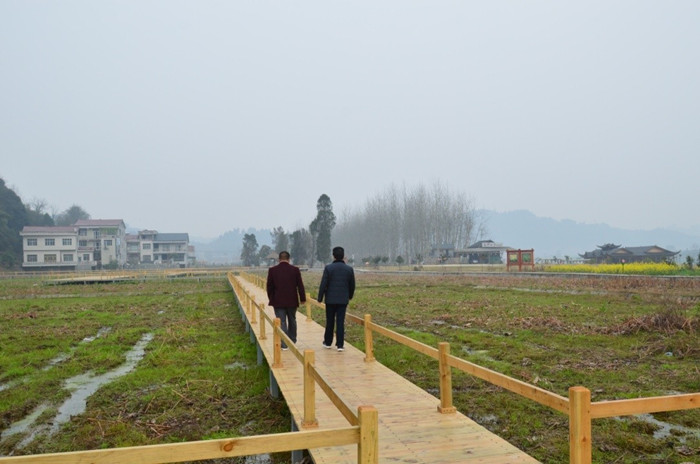 “农民大学生培养计划” 2016级行政管理本科学生、椒林村党支部书记滕坛喜(左)陪同怀化电大党委书记刘天佑参观荷花园。