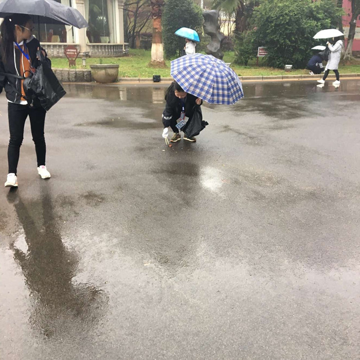 当天上午,全体志愿者冒着风雨赶到目的地后,大家分头领取各自的装备,开始了有秩序的环保活动。途中,志愿者们碰到了前来询问的明德中学的学生,他们对参加志愿者活动表现出十分的向往,在活动结束后不少志愿者们都与他们成为了很好的朋友。我系志愿者们也因积极主动、热心帮助园区保洁工作者们,得到了他们的肯定与感谢。