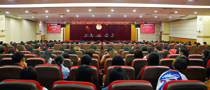 火红的团旗辉映着火红的青春,春意盎然的校园,充满着勃勃生机。为深入贯彻落实全国高校思想政治工作会议精神,全面推进我校大学生思想政治工作,充分发挥团学骨干在我校大学生思想政治工作中的生力军作用。3月23日晚七点整,湖南广播电视大学(湖南网络工程职业学院)青年团校2017年春季团学骨干培训班开班仪式在远教楼负一楼报告厅举行。校党委副书记周宇、副校长吴敏出席开班仪式,校团委全体委员、辅导员、班主任及270多名团学干部参加了开班仪式。开课仪式由校团委书记何海主持。