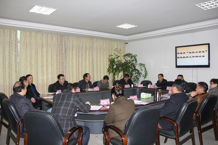 3月24日下午,常德市“农民大学生”实践教学工作研讨会在常德电大召开。常德市委组织部党教中心副主任裴国富、校外专家以及实践基地负责人应邀出席了会议。常德电大校长朱立春、副校长郭作杰以及相关同志参加了此次会议。研讨会由校长朱立春主持。