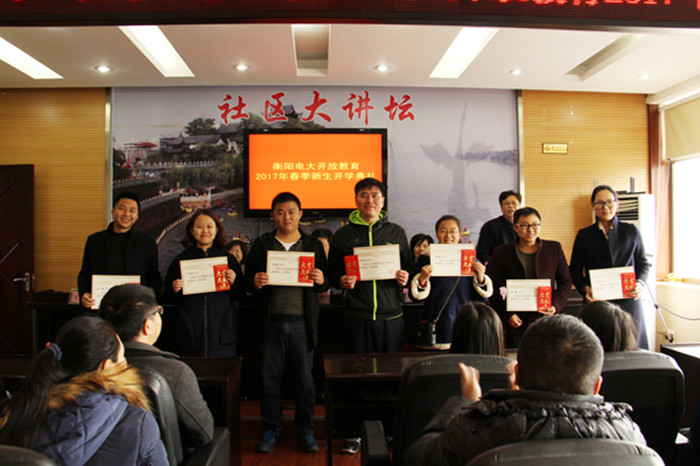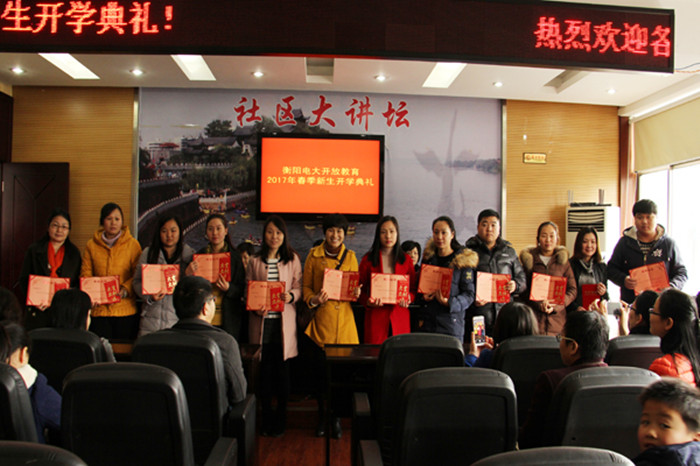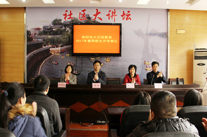 阳春三月,春暖花开,在这个万物欣欣向荣的美好时节,衡阳电大迎来了2017年春季开放教育新生。3月25日下午,衡阳电大在A507会议室隆重举行了2017年春季开放教育新生开学典礼。衡阳电大校长萧烽、工会主席刘燕、副校长陆秀艳及处、院负责人出席了开学典礼。会议由开放教育学院院长陈祖一主持,开放教育学院全体教师、校本部2017年春季新学员及2016年国家开放大学奖学金、湖南电大奖学金获奖者参加了典礼。