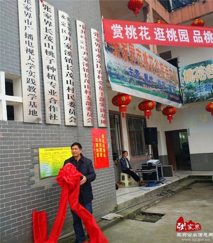 4月7日上午,张家界电大“农民大学生培养计划”长茂山实践教学基地挂牌仪式举行,标志着张家界市第二个农民大学生校外实践教学基地正式落户永定区尹家溪镇茅溪村长茂山。张家界电大党支部书记廖世健、副校长彭兴顺、周永晟,永定区委组织部领导以及来自市电大全体教师、农民大学生代表出席仪式。