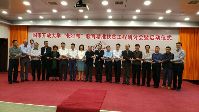 “长征带”教育精准扶贫工程(以下简称“工程”)是为贯彻落实中央扶贫开发工作会议精神,切实把“精准扶贫”落在根上、落到实处而由国家开放大学牵头组织实施的一项重大教育工程。该工程计划从2017年至2020年,用四年左右的时间,对红军长征沿线有关省(区、市)的国家级贫困县进行教育精准扶贫。通过免费培养乡村基层干部、免费为贫困人员提供学习机会、免费开展职业技能培训等方式,有针对性地开展精准扶贫,力求以扶智带扶贫,隔断贫困的代际传递,促进革命老区从根本上摆脱贫困,与全国同步进入小康社会。