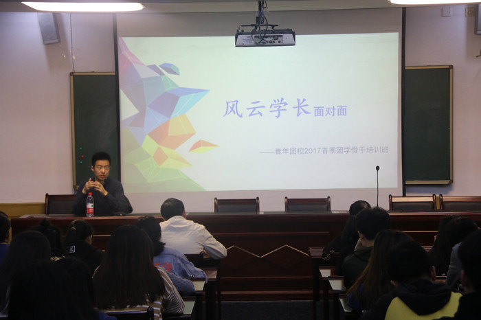 4月12日中午,校团委在教学楼230教室举办2017年春季团学骨干培训班之“风云学长面对面”活动,活动邀请了优秀学长为学生干部介绍学习、生活、工作、职业规划等经验,旨在解决团学工作中遇到的实际问题和面临就业、创业和升学选择的疑惑,提高团学干部的工作水平和就业竞争力。北京大学汇丰商学院范世鹏同学作为受邀的嘉宾参与了本次活动。