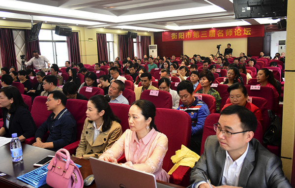 4月25日-26日,衡阳市第三届名师论坛活动在衡阳电大举行。本次论坛由市教育局主办、衡阳市广播电视大学(市中小学教师发展中心)承办、衡阳市教育科学研究院协办。市教育局党委委员、副局长谭小华,华东师范大学考试与评价研究院院长陈玉琨,衡阳电大校长萧烽,衡阳市教育科学研究院院长朱伟成,衡阳市八中校长龚彩福,衡阳市教育局教师工作科科长王益前等领导参加了论坛活动,本次论坛由衡阳电大副校长龙永保主持。来自全市55位名师代表、市直学校主管教师工作的负责人和市教育科学研究院全体教研员参加论坛交流和探讨。